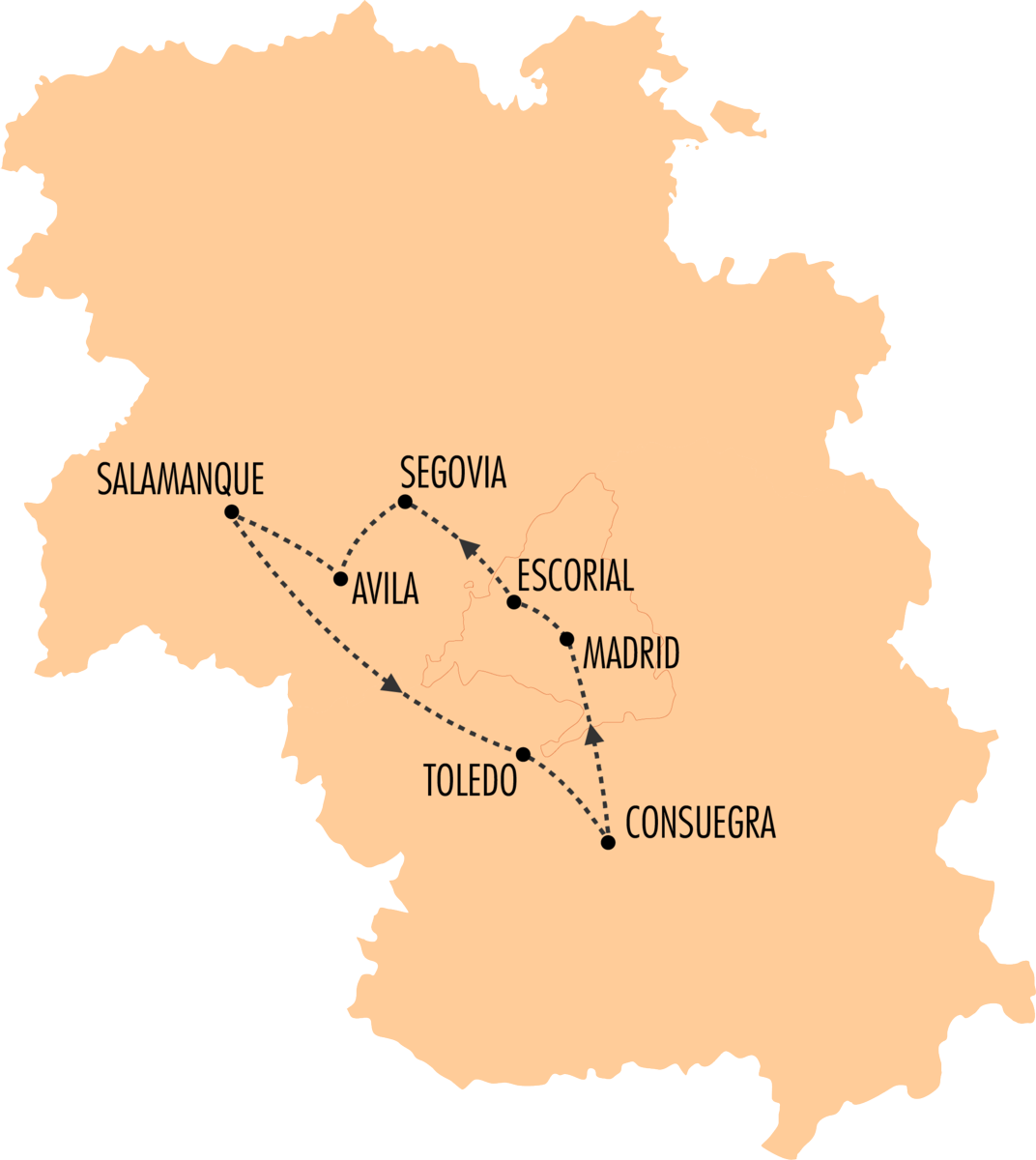Petit-déjeuner et départ de l’hôtel vers Avila. En chemin, nous nous arrêtons à Ségovie pour y passer une partie de la journée. Promenade dans la vieille ville et découverte du magnifique aqueduc romain. Nous visitons ensuite l’Alcazar qui a été construit au début du XIIIème siècle et qui est juché au sommet du promontoire qui domine la ville, ainsi que la Cathédrale de Ségovie surnommée « la Dame des Cathédrales » de par ses dimensions et son élégance. Déjeuner dans un restaurant local. Nous continuons la visite de la ville dans l’après-midi et partons vers Avila. Installation à l’hôtel. Dîner libre et nuitée.