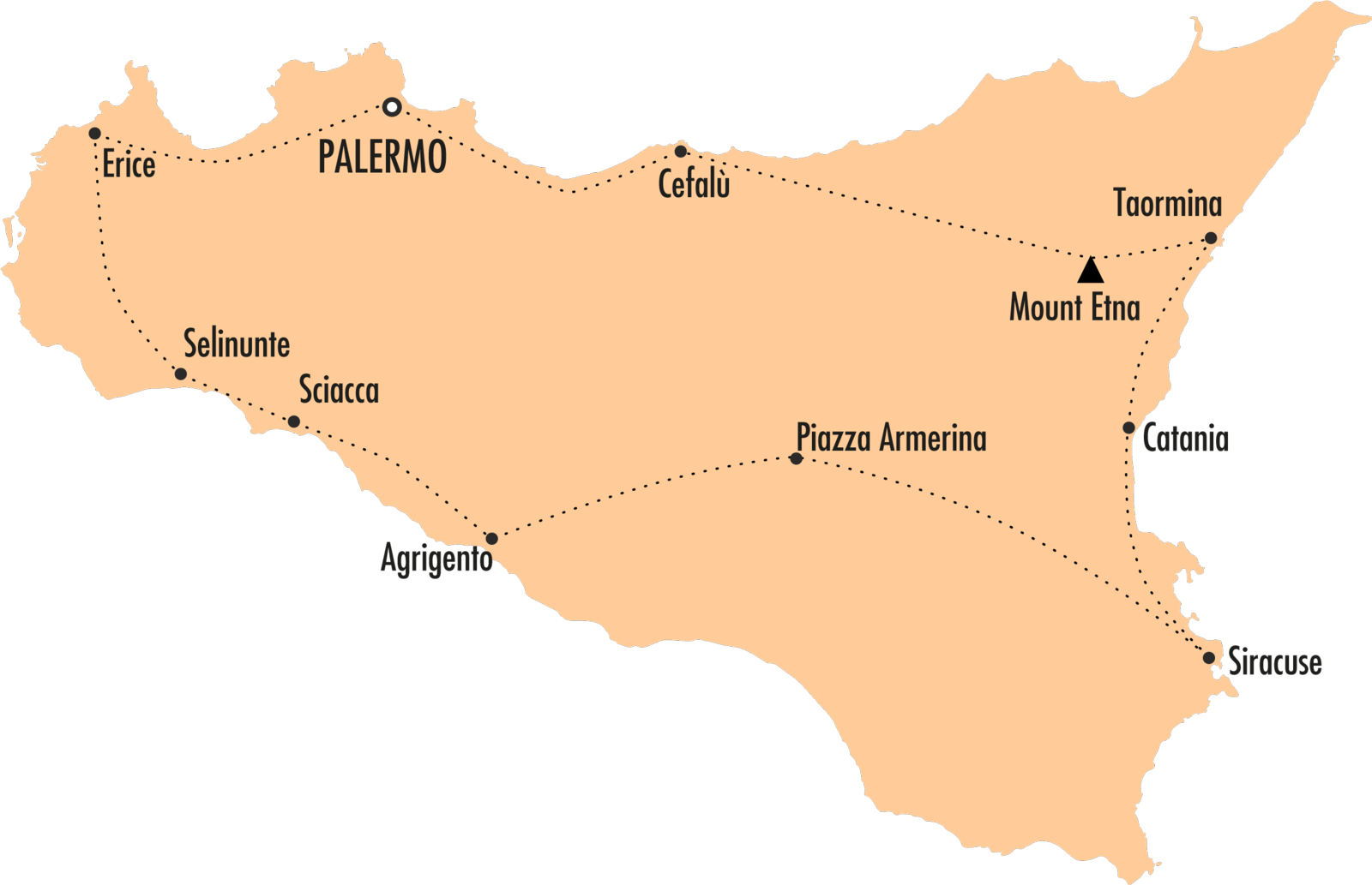 Trinacria : la « terre aux trois pointes ». C’est ainsi que les Grecs ont défini la Sicile, ce triangle moins grand que la Belgique. Un territoire dont la superficie est inversement proportionnelle à son importance historique. Un territoire qui abrite aussi bien la vallée des Temples grecs d’Agrigente que les sensuels palais arabes des rois normands de Palerme, le tout sous l’emprise de l’Etna. Une terre riche de contrastes, qui mérite bien l’approche que nous vous proposons. Carrefour des civilisations, la Sicile est une mosaïque de fabuleux vestiges grecs, de châteaux et de cathédrales, de jardins orientaux, de palais et d’églises au baroque tardif hispanisant. Au fil des siècles, elle s’est dotée d’une identité culturelle bien particulière. Sans négliger sa délicieuse et originale gastronomie et sa végétation à la fois exotique et typiquement méditerranéenne qui caractérise la nature volcanique de ses terres.