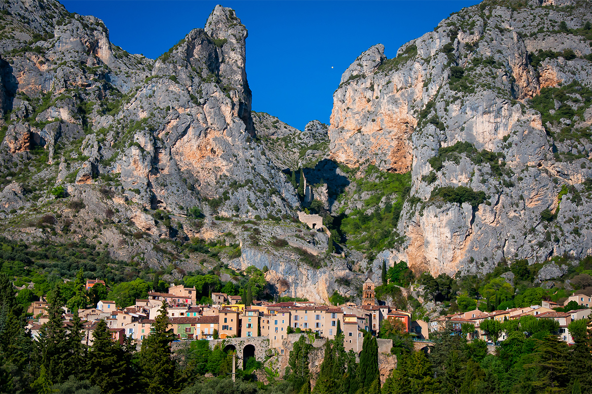 Visite libre de Moustiers-Sainte-Marie connue pour ses faïences à petites fleurs bleues et pour ses rues joliment décorées. Depuis 1981, Moustiers-Sainte-Marie figure parmi les plus beaux villages de France. Son église romane, ses remparts, ses chapelles, son aqueduc, ses fontaines, ses alliances d’eau et de pierre, les tons pastels de ses tuiles et de son tuf créent un ensemble architectural homogène et vivant.