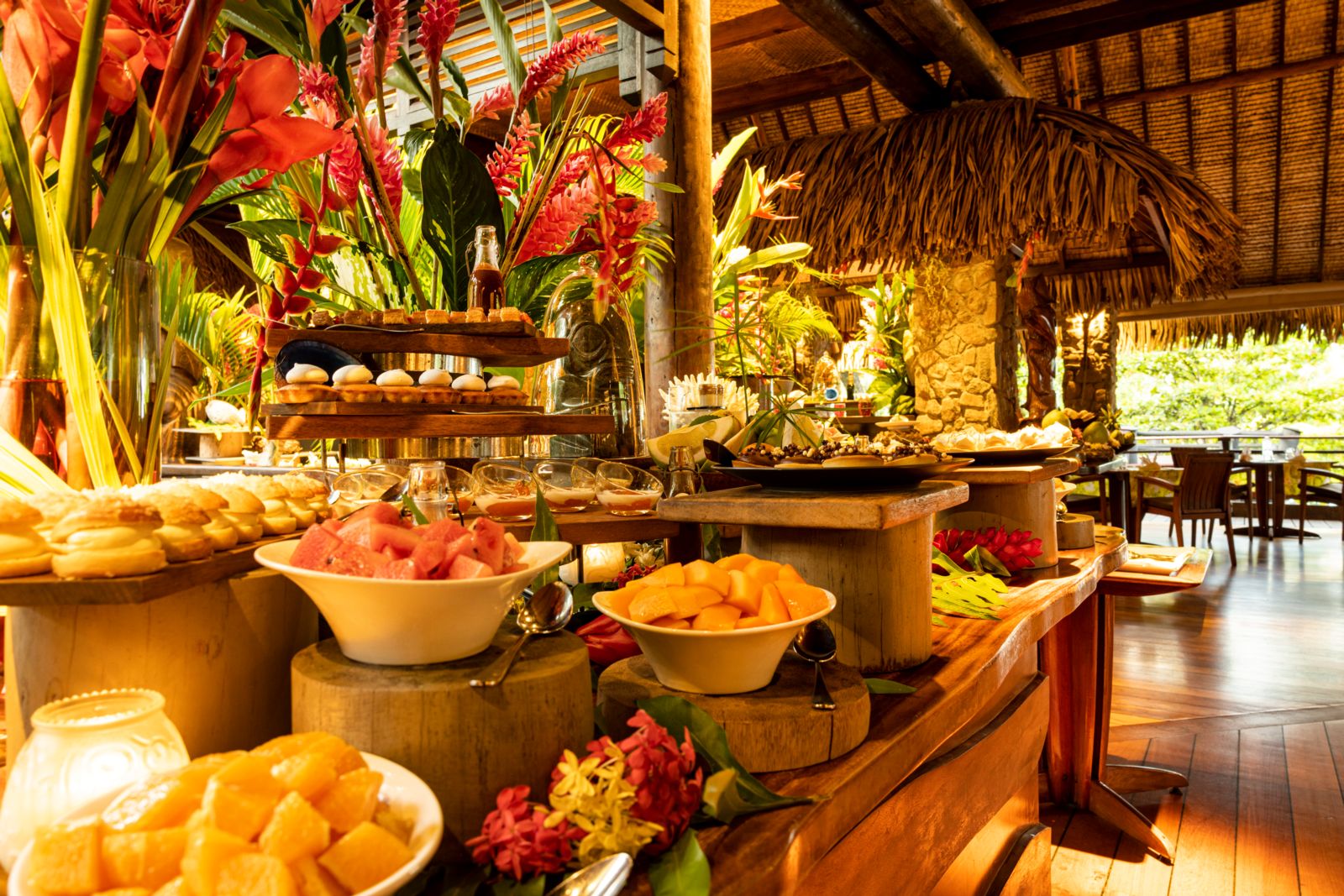 Après cette immersion dans l'eau, détendez-vous sur l'un de nos motus privés, où vous serez accueilli par un festin de saveurs locales. Dégustez des fruits tropicaux juteux, du poisson frais pêché le jour même et des plats délectables qui enchanteront vos papilles. Laissez-vous séduire par la chaleur de notre hospitalité et l'atmosphère paisible qui enveloppe l'île. Après 4 heures de découvertes passionnantes, vous naviguerez lentement jusqu'à notre "motu" (terme local pour îlot), où un délicieux buffet de plats locaux vous attend.