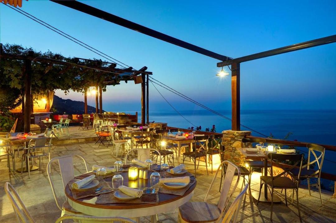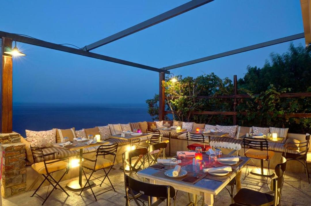 Le petit déjeuner est servi entre 8h30 et 10h00 dans la taverna « Stathis », situé dans la vieille ville et qui est exploitée par les propriétaires de l'hôtel. Nettoyage et changement de draps 2 fois par semaine, piscine avec vue panoramique, transats et parasols. Wifi à la taverne et à la piscine.