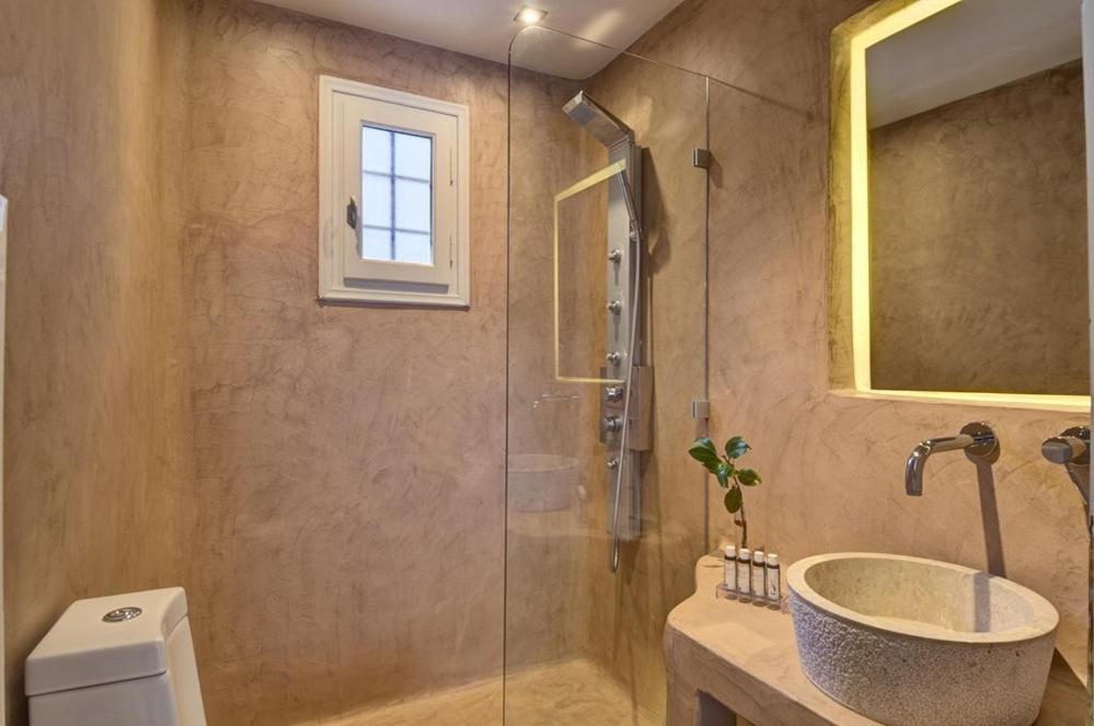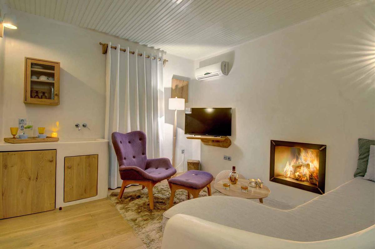 Les studios de 1 ou 2 personnes sont dotés de climatisation, chauffage, télévision, coffre fort, salle de bains avec baignoire ou douche, WC, sèche-cheveux, terrasse avec la vue sur le jardin. Certains studios disposent d'une cheminée et d’un balcon ou une terrasse avec vue mer. Le chambres supérieures se trouvent dans les nouveaux bâtiments et sont munies d'une cheminée, climatisation, chauffage, télévision LCD, coffre fort, salle de bains avec baignoire jacuzzi ou hydromassage, WC, sèche-cheveux et balcon avec la vue mer. Les appartements de 2 à 4 personnes disposent des mêmes facilités que le studio, ont 1 chambre à coucher et 2 canapés lits, une cheminée et un balcon avec la vue mer. Les studios suites de 2 à 4 personnes font 54 m², se situent dans les nouveaux bâtiments et disposent des mêmes facilités que le chambres supérieures chambres, 1 chambre à coucher avec lit double et 2 canapés lits, kitchenette et balcon avec la vue mer.