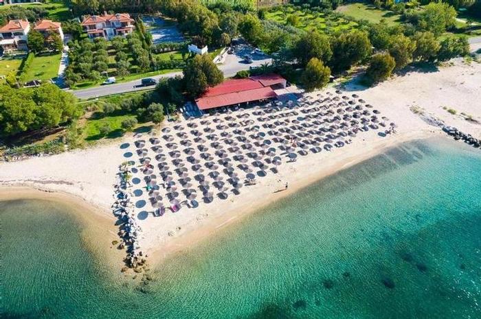 L’hôtel se situe dans le village de Tripiti, à 5 km du centre d’Ouranoupolis. Dans un cadre verdoyant offrant une vue imprenable sur la mer Egée et l’île d’Amouliani et au calme, c’est un endroit idéale pour une visite de la région ainsi que du Mont Athos. L’aéroport le plus proche est celui de Thessalonique, qui se trouve à +- 1h30 de route. Le village de Stagira, berceau d’Aristotle (tuteur d’Alexandre le Grand) se trouve à 20min de route.