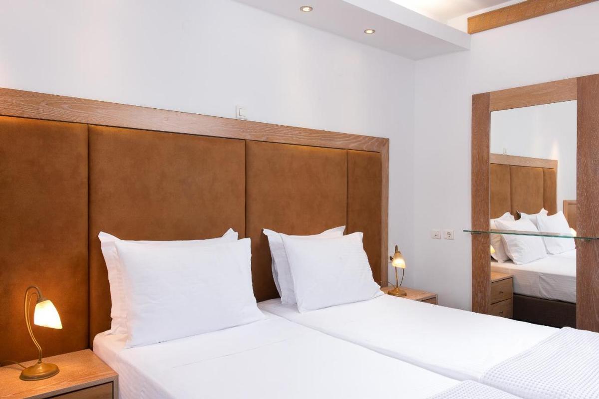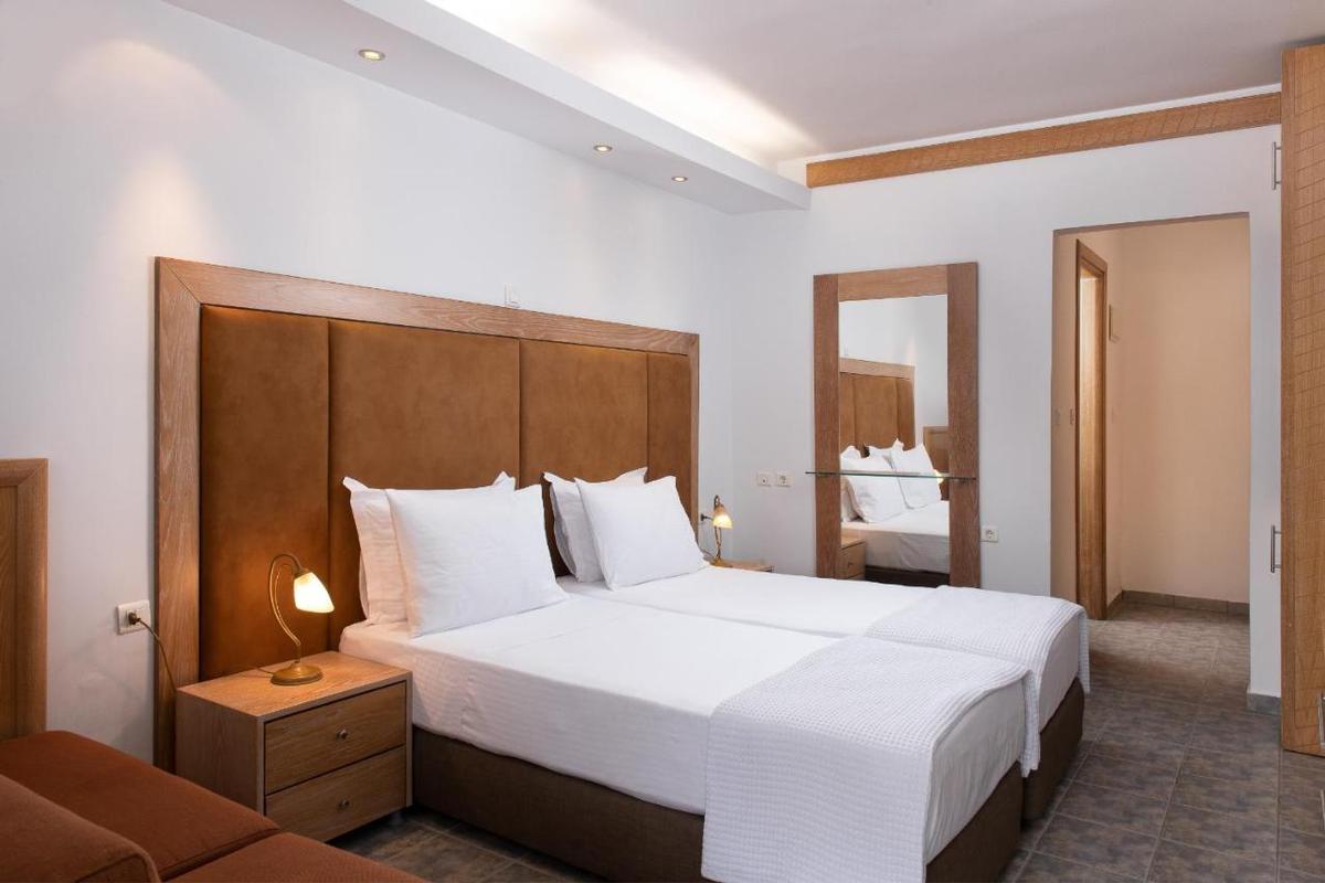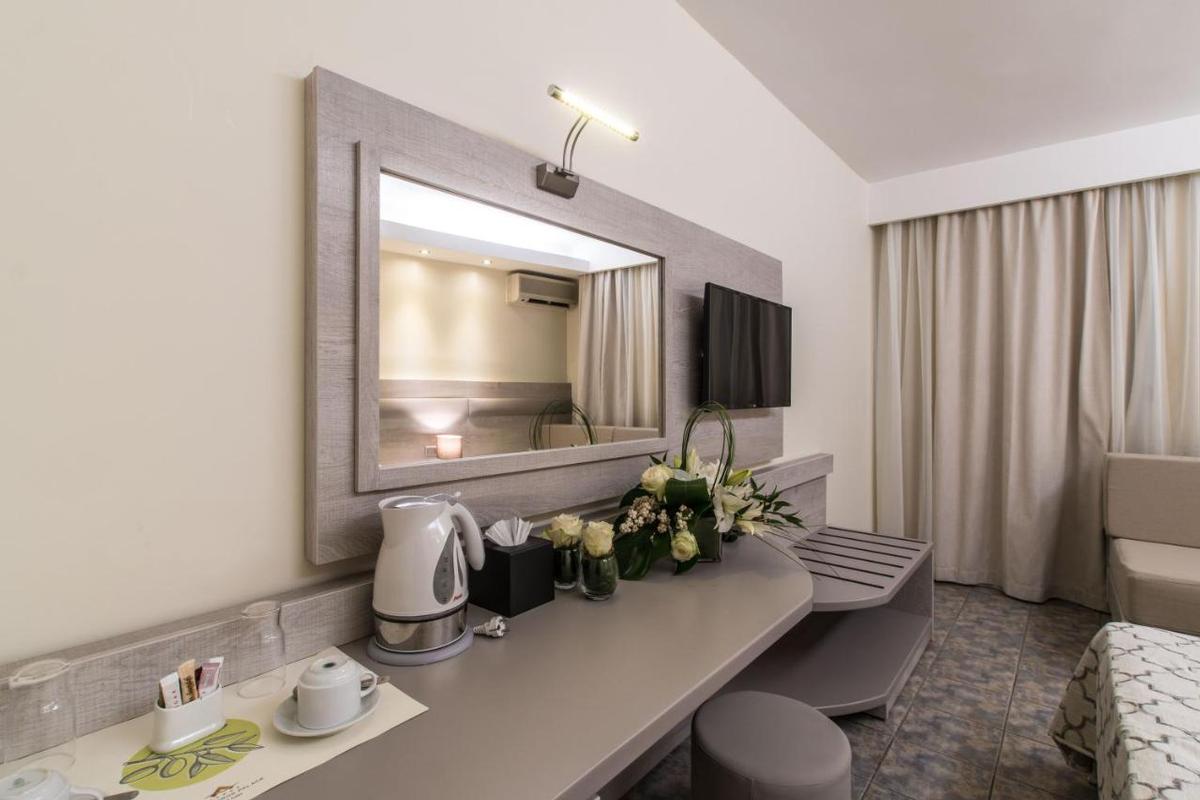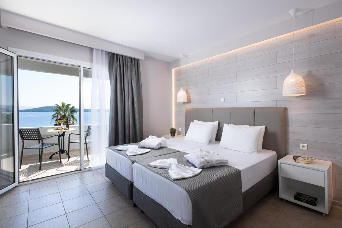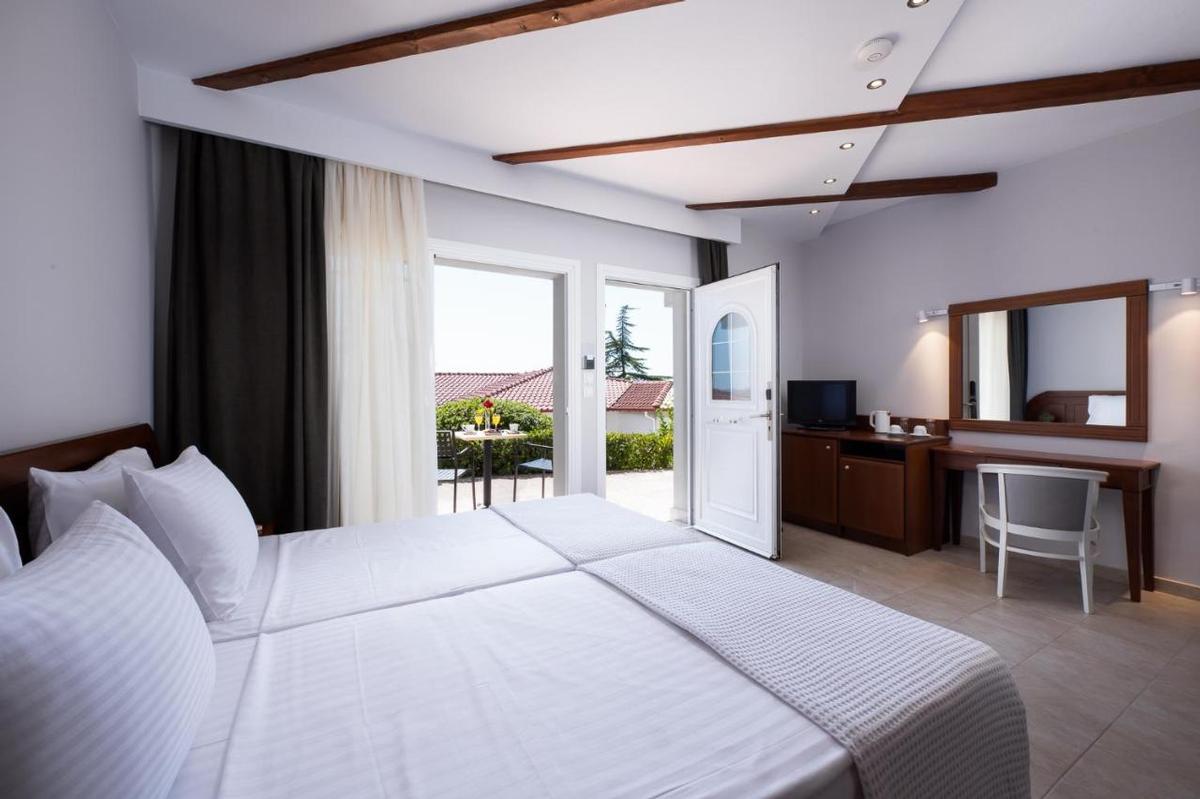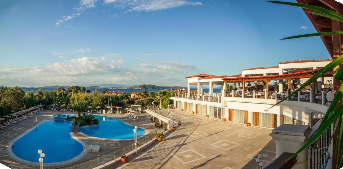 L’hôtel dispose de 243 chambres et suites dans bâtiment principal et annexes. Toutes les chambres disposent d’une salle de bain avec douche ou bain, balcon/véranda avec vue jardin, vue mer ou vue sur le Mont Athos. Les chambres standard peuvent accueillir 2 à 3 personnes et font 23 m².