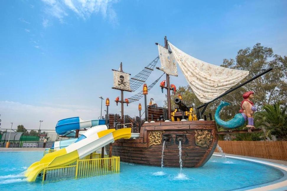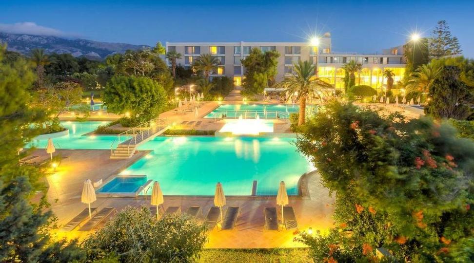 Réception, lobby, lounge TV, salle à manger, salle de réunion, bar, snack bar, coiffeur, superette, blanchisserie (payant), air de jeux pour les enfants. Soirée grecque 1 fois par semaine. Piscine avec pataugeoire pour les enfants, bar à la piscine, chaises longues et parasols (gratuit à la piscine, payant à la plage), plage de sable avec bar et snack bar, 3 terrains de tennis, tennis de table, volley-ball, billard, minigolf, beachvolley, tire à l'arc.
