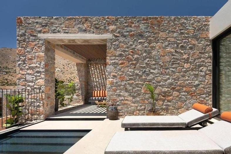 Situé à flanc de colline dans un large jardin, séparé de la mer uniquement par la petite route côtière, et surplombant le pittoresque Golf d’Elounda et l’île de Spinalonga. Elounda et son charmant port se situe à environ 2km et la petite ville d’Aghios Nikolaos à 11km. L’aéroport d’Heraklion est à 50min de route.
