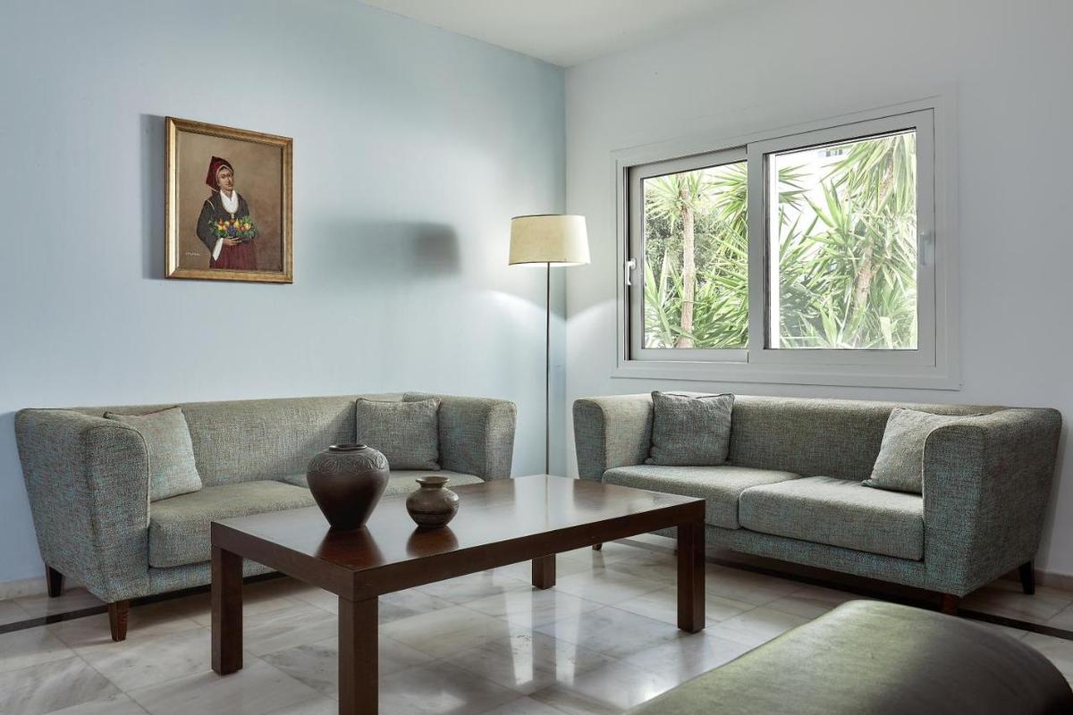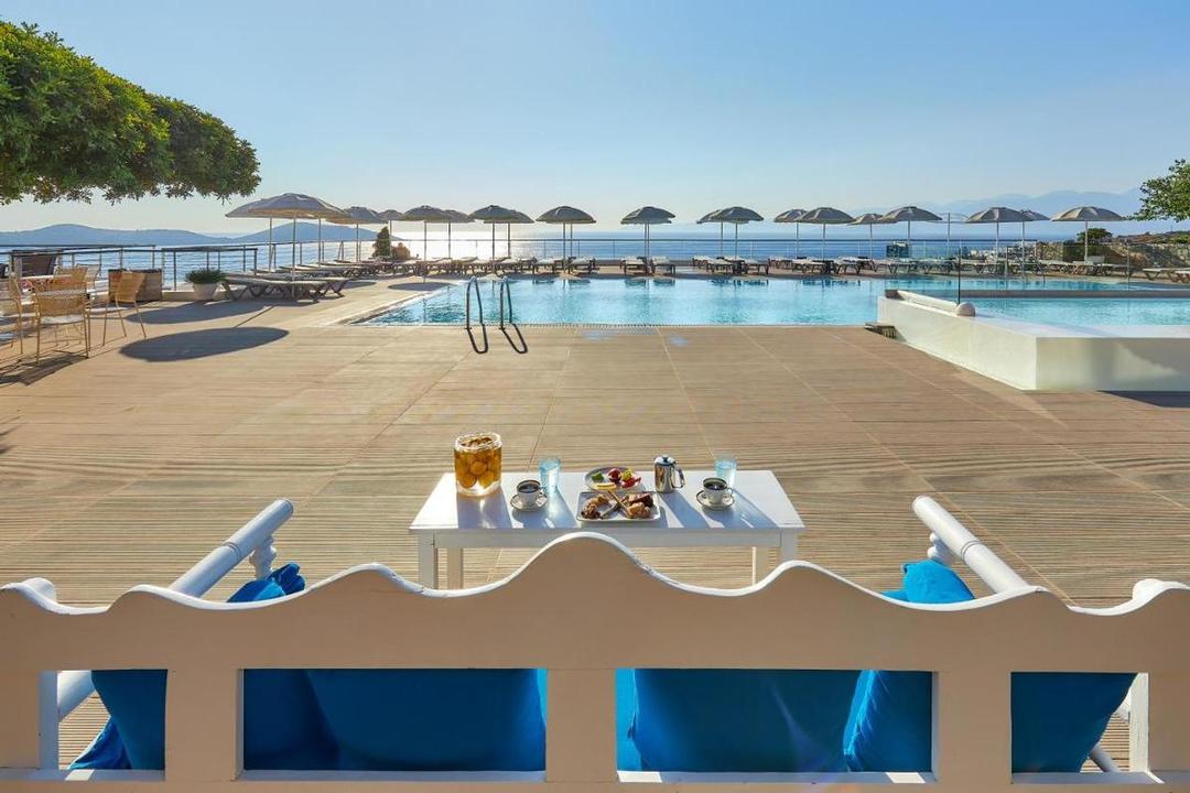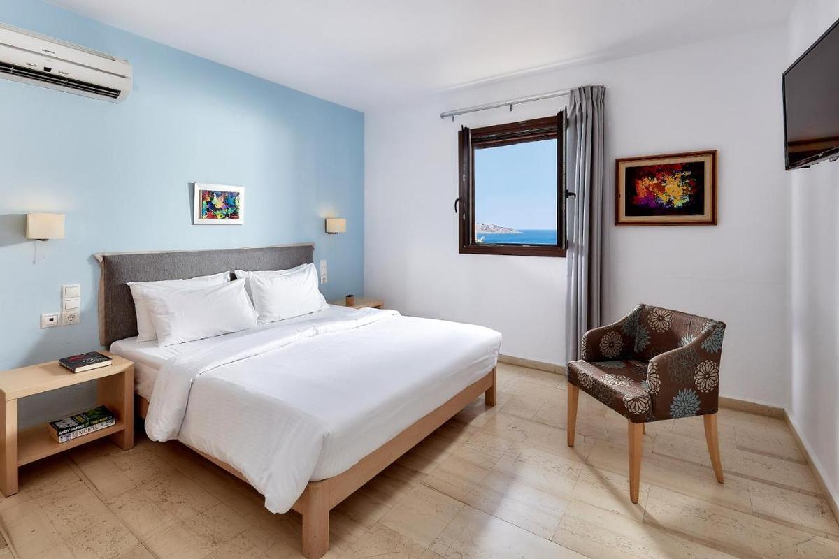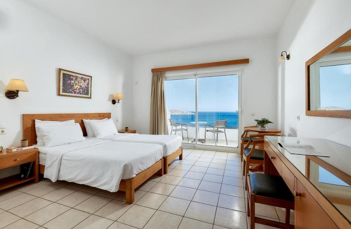Situé sur une colline avec une vue panoramique sur la baie d'Elounda et l'île de Spinalonga. La petite baie se trouve à 200 m. Eloúnda (environ 3 km) et Aghios Nikolaos (environ 7 km). Arrêt de bus à moins de 10 minutes à pied. L'aéroport d'Héraklion est à env. 50 minutes en voiture.