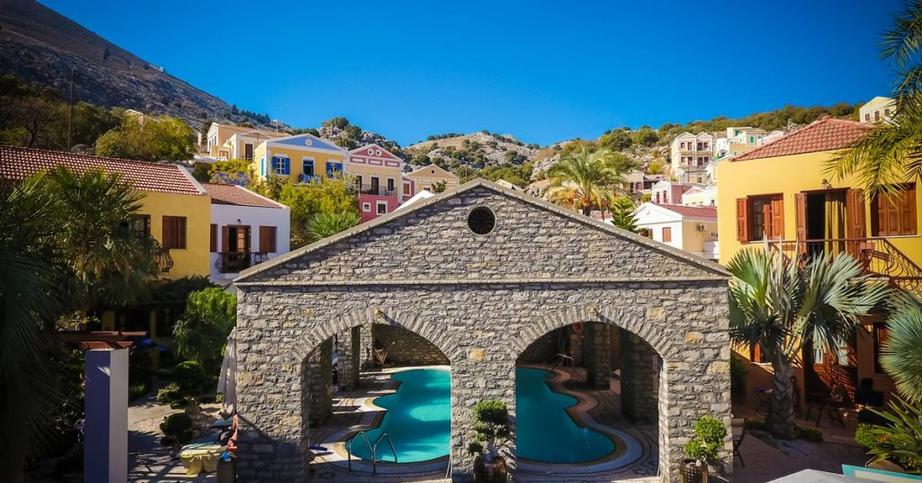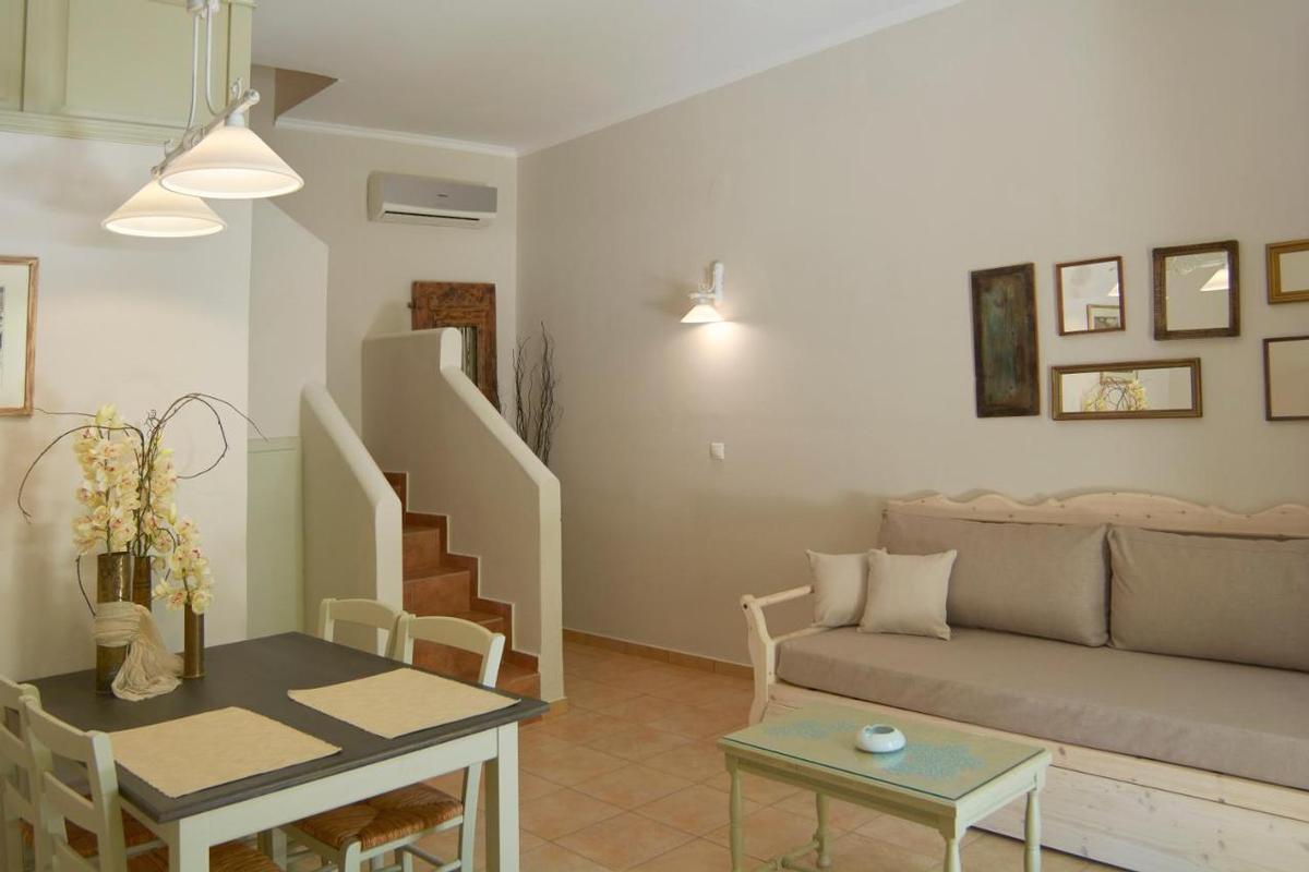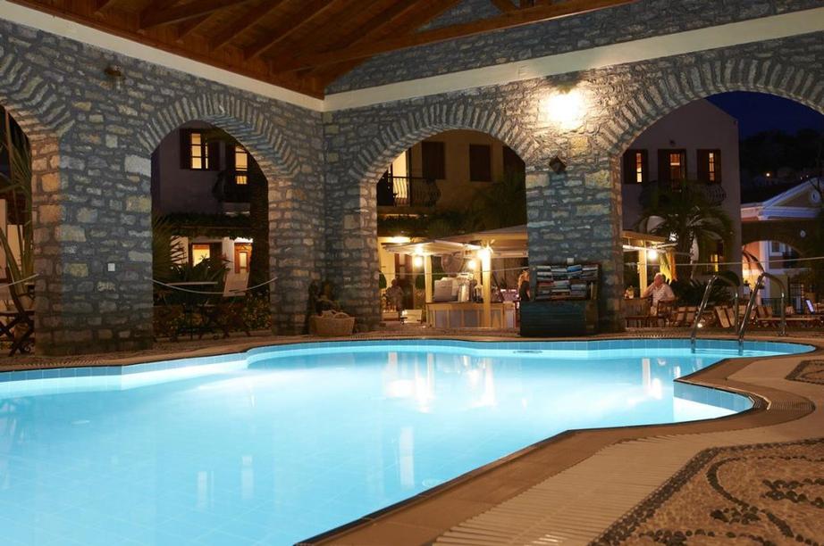 Réception, espace petit déjeuner, restaurant, bar, WIFI, presque tous les logements ont vue sur le jardin et la piscine, petite piscine couverte avec bar à la piscine et à la terrasse, chaises longues, parasols, essuies de plage, plage de galets Nos à 1km, bateaux taxi vers les autres plages, sauna. Entretien quotidien des chambres, changement de draps 3 fois par semaine.
