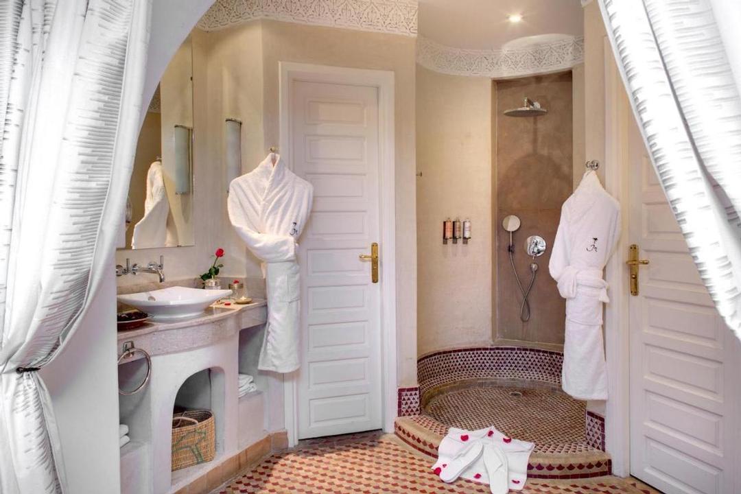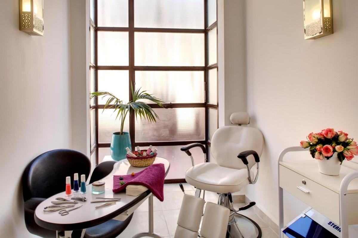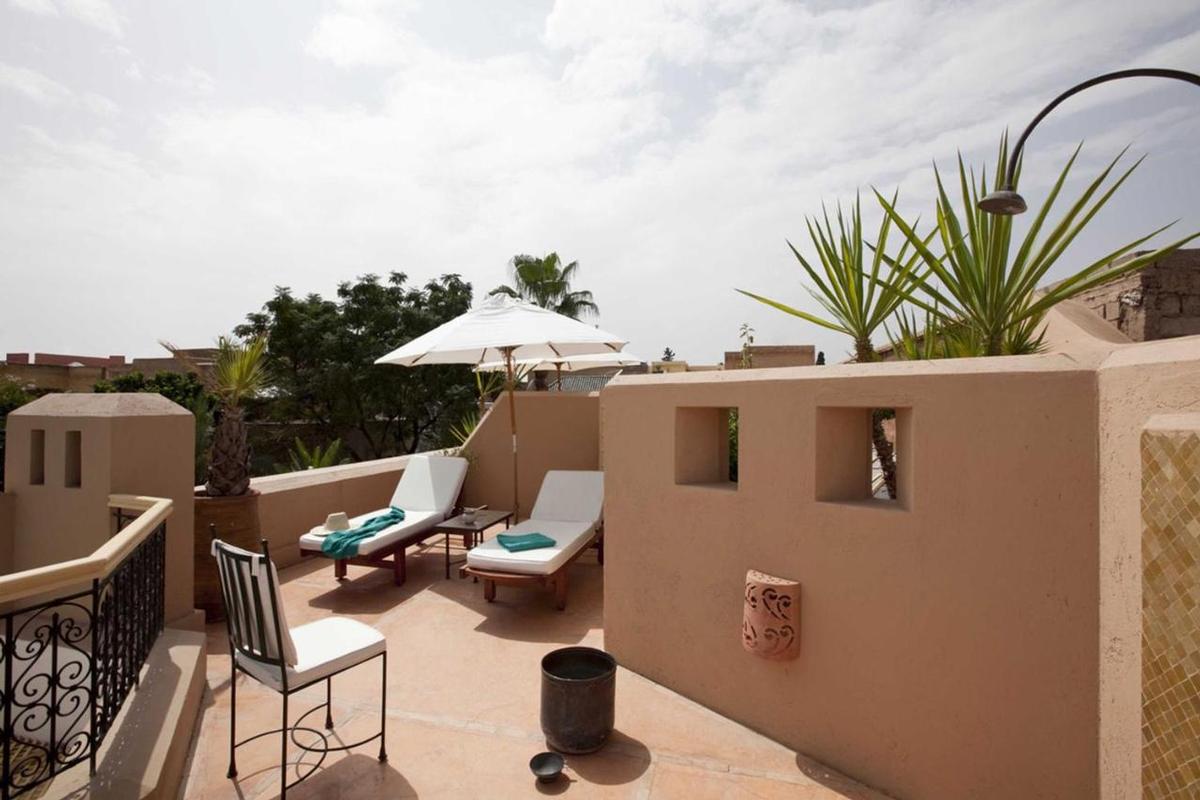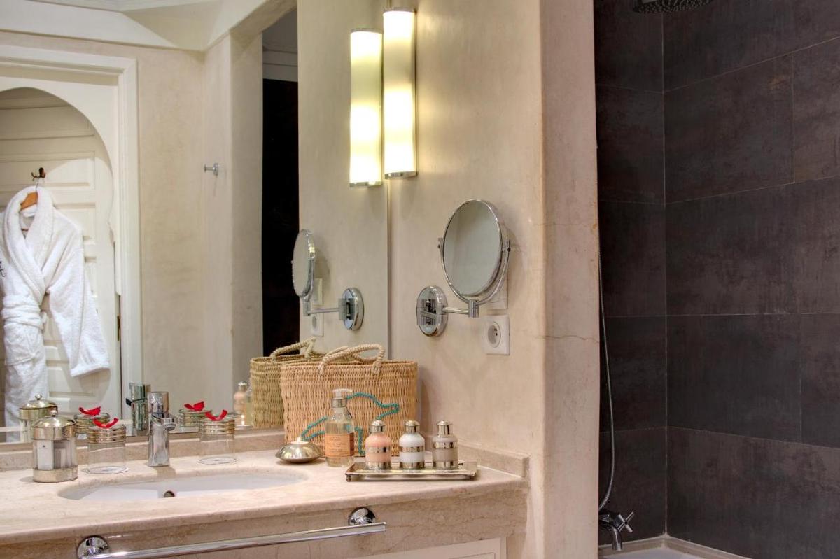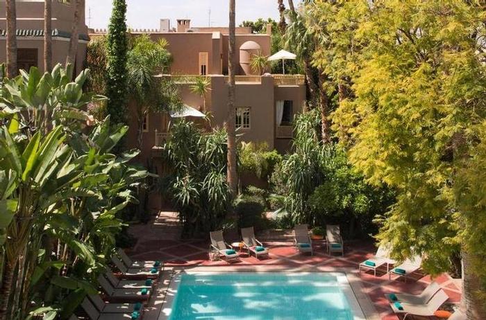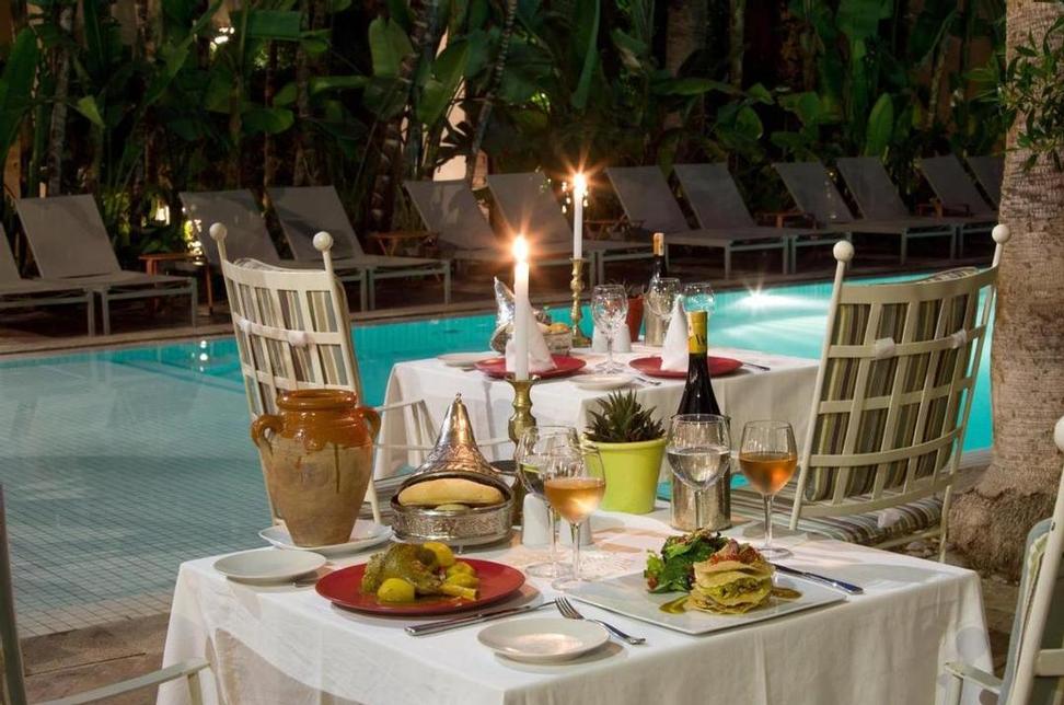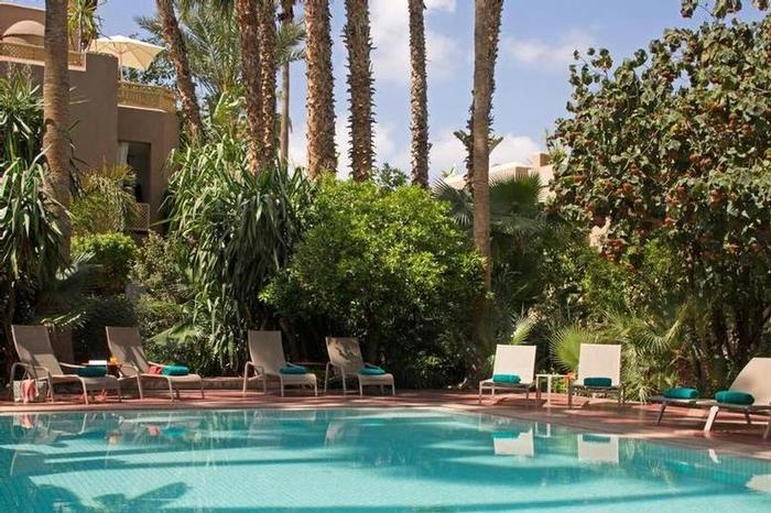 Terrasses solarium panoramiques face à l'Atlas. Piscine chauffée en hiver et aménagée. Espace fitness. L'espace bien-être est organisé autour d'un hammam traditionnel et d'un salon de massage où différentes formules sont proposées selon les rituels ou par thèmes: massages, gommages, traitements facial, pédicure, manucure.