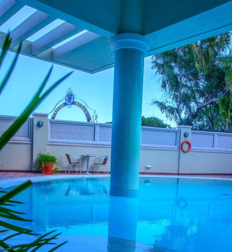 Au cœur de la ville de Rhodes, sur la plage, proche de l'Aquarium (passage souterrain), du Casino et à quelques pas de la Ville moyenâgeuse, 500 m du port, 14 km de l'aéroport.