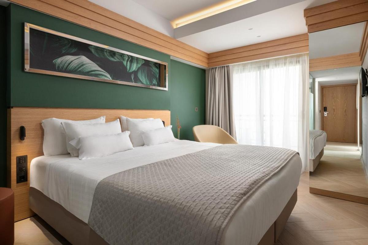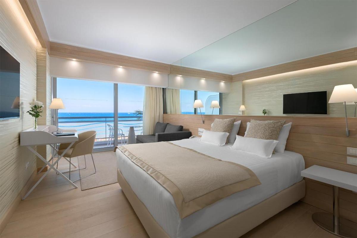Rénové en 2000, l'hôtel offre 241 chambres et suites, la plupart avec vue sur la plage et la mer. Les chambres, en mobilier élégant et confortable ont salle de bain, sèche-cheveux, téléphone, TV satellite, minibar, coffre-fort (payant), climatisation, balcon vue ville, vue mer partielle ou frontale (avec supplément). Chambres quadruples jusqu'à 4 adultes. Lit bébé payant.