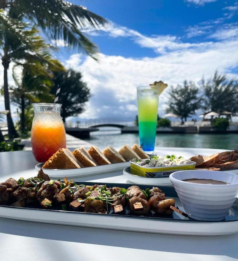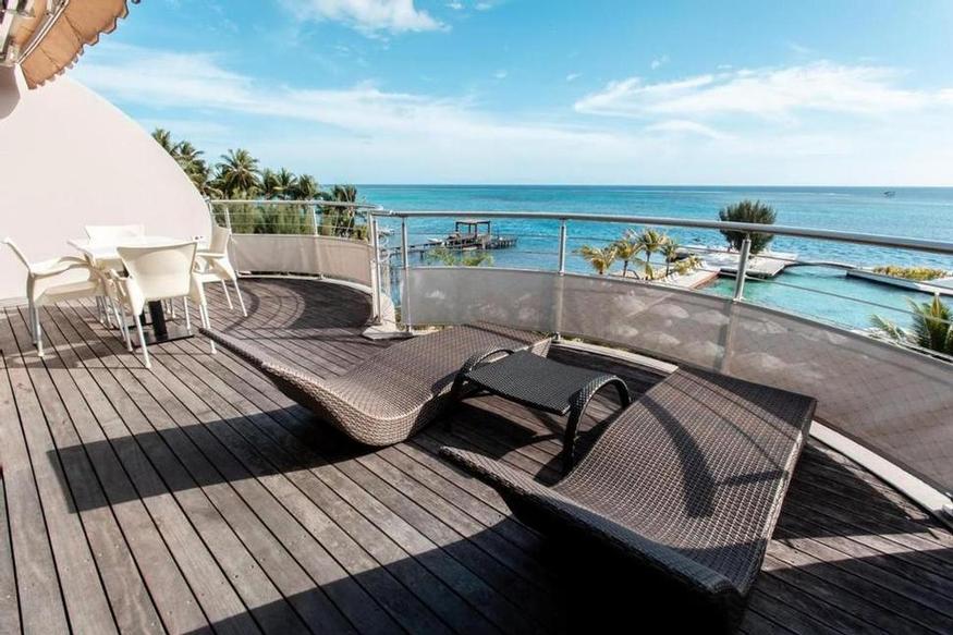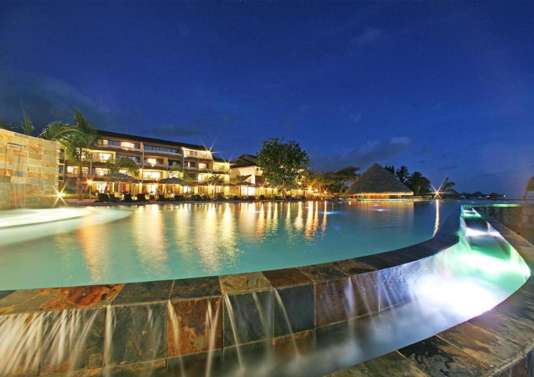 Piscine à débordement offrant une vue sur le lagon, salle de fitness, bureau d’excursions pour vous aider à réserver des activités.