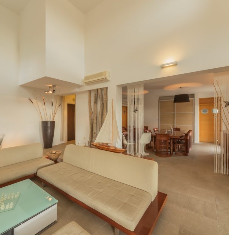 La villa comprend trois suites spacieuses avec un lit queen size, un espace bureau avec un sofa, une salle de bain et une terrasse avec vue sur mer. Il y a également 3 chambres standards avec lit double et salle de bains avec douche. Enfin, une chambre "boudoir" de décoration moderne vous est proposé avec un lit queen size et une salle de bain avec douche.
