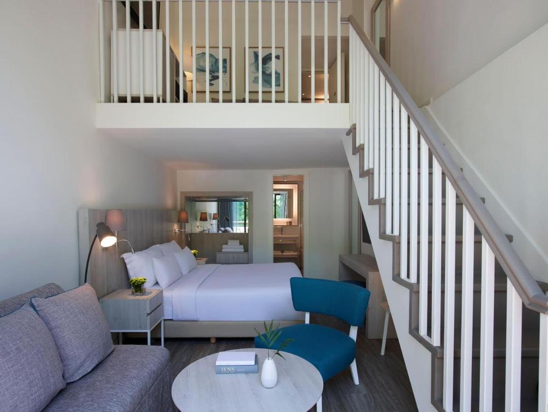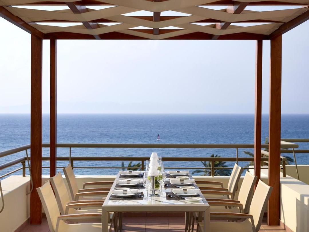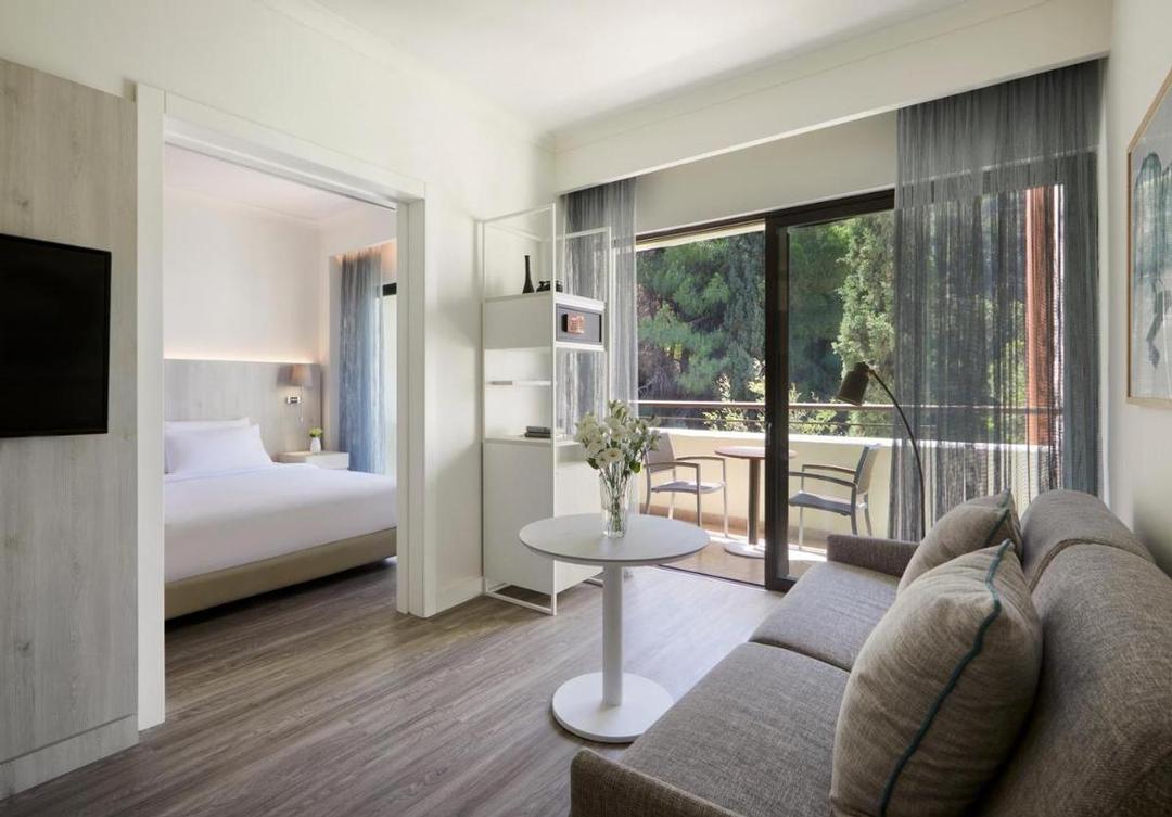 Un hôtel élégant avec 320 chambres réparties sur 11 étages. Toutes les chambres sont confortablement meublées et disposent d’air conditionné (Juin-Septembre), téléphone, coffre-fort, TV satellite, Wi-Fi et minibar. Salle de bains avec baignoire / WC, sèche-cheveux, peignoirs et pantoufles. Balcon avec vue parallèle sur l’arrière-pays ou vue sur la mer. Les suites familiales sont des maisonnettes qui disposent de toutes les facilités de la chambre standard. Au rez-de-chaussée se trouve le salon avec canapé-lit et salle de bains avec douche/WC. À l’étage se trouve la chambre, un coin salon et une salle de bains avec bain/WC. Balcon avec vue mer. Les bungalows sont situés sur la colline boisée et disposent des mêmes facilités que la chambre standard avec canapé-lit. Salle de bains avec bain/WC, sèche-cheveux. Balcon ou terrasse.