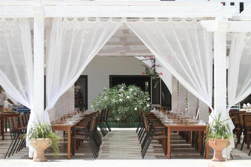 L’hôtel fonctionne en système All Inclusive. Le petit déjeuner, le déjeuner et le diner se prennent au restaurant principal qui comporte une terrasse abritée par une pergola. Les repas sont servis sous forme de buffets en self service. Le petit déjeuner tardif est proposé au lobby bar de 10h00 à 12h00. Il y a également un restaurant à la carte en bord de mer : chez Max (1 fois par semaine, sur réservation). Plusieurs bars vous proposent des boissons alcoolisées ou non entre 09h00 et 02h00 (horaires suivant les bars).