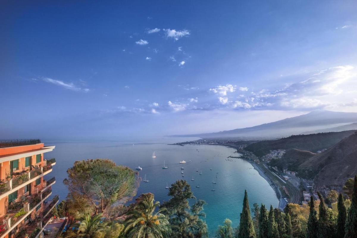 Taormina est le point de départ idéal pour l'Etna et en général toute la côte Orientale de l'île. Taormina est perchée à 140 m de hauteur sur le "Monte Tauro", elle domine la baie de Naxos et s'avère être un véritable balcon fleuri donnant sur l'une des plus belles baies au monde. Les Romains furent les premiers à découvrir "touristiquement" la ville, parsemée de bougainvilliers et y construisirent des villas patriciennes. Au début du XX siècle, le baron Von Gloeden y découvrit un sujet idéal pour ses photos de jeunes garçons autochtones, descendants des anciens Grecs et possédant la beauté, aussi bien au niveau de l'harmonie de leur corps que de leur visage. Von Gloeden fit des photos extraordinaires, qui eurent l'avantage de faire connaître au monde, les beaux paysages de Taormina. Aujourd'hui dans le centre de Taormina, entièrement piétonnier, les magasins d'artisanat sicilien vous proposent une véritable exposition permanente d'objets les plus divers. On y retrouve souvent des livres et des photos de Von Gloeden dans leurs étalages.