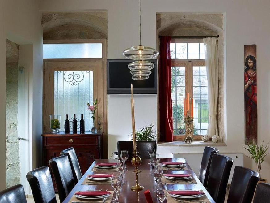 Réception, WIFI, feu ouvert, espace petit déjeuner, dîner à la demande, service de chambre, piscine avec hydromassage dans le jardin, transats.