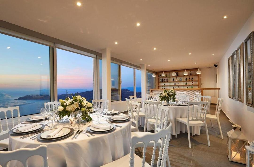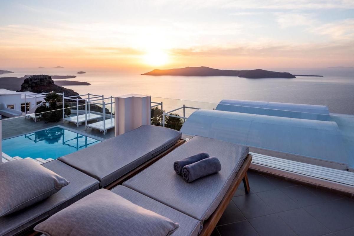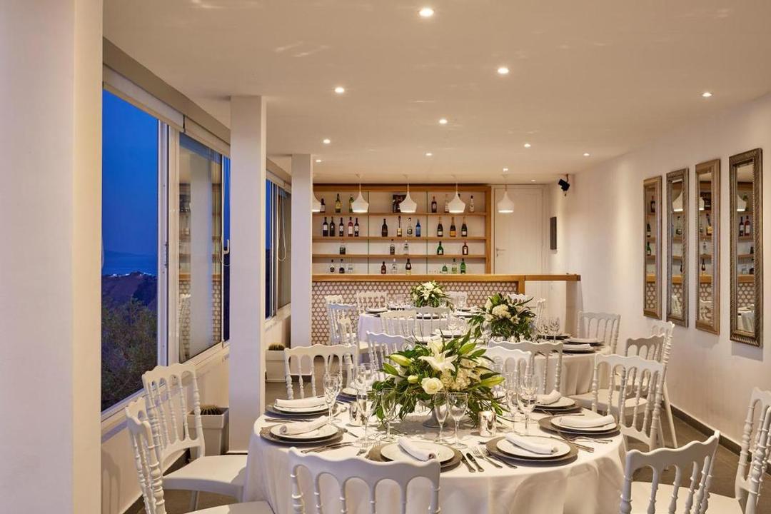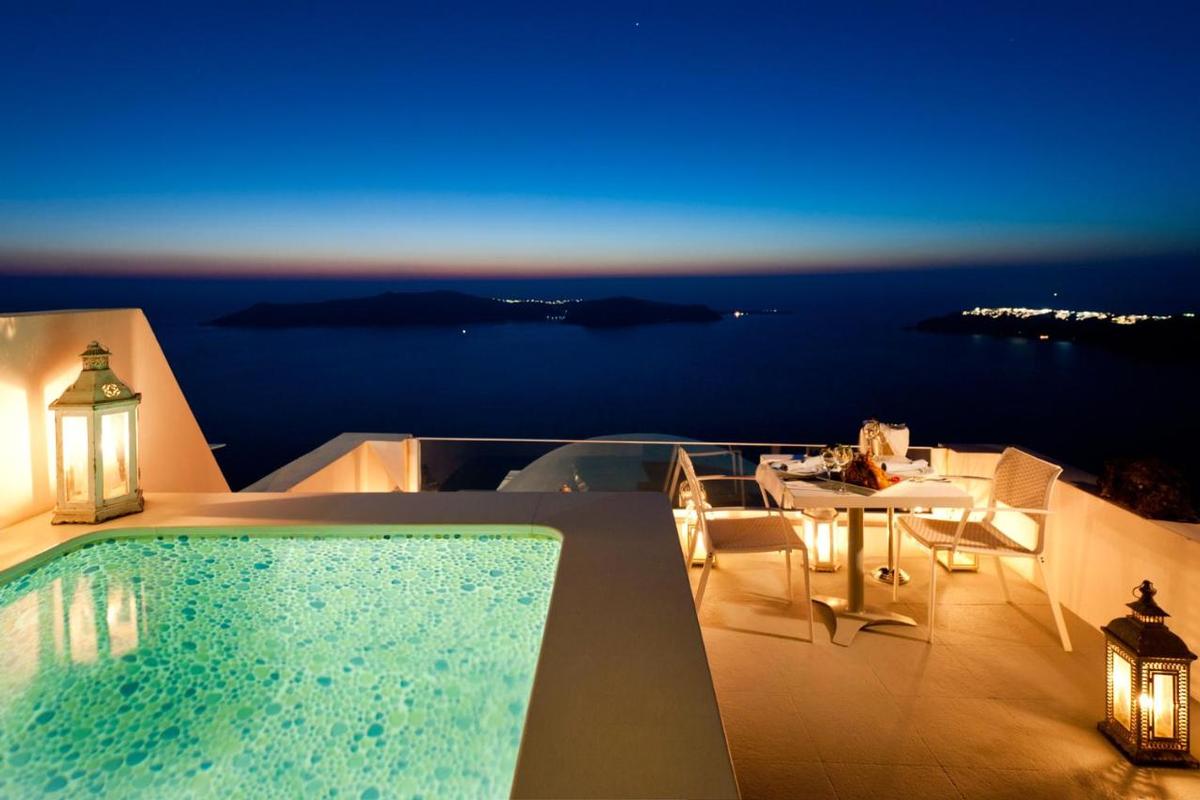 Hotelcomplex met traditionele architectuur, gebouwd in de zijkant van de klif met een adembenemend uitzicht op de Caldera. Het hotel ligt in het dorp Imerovigli. Het ligt op 8 km van de luchthaven en de haven van Athinios.