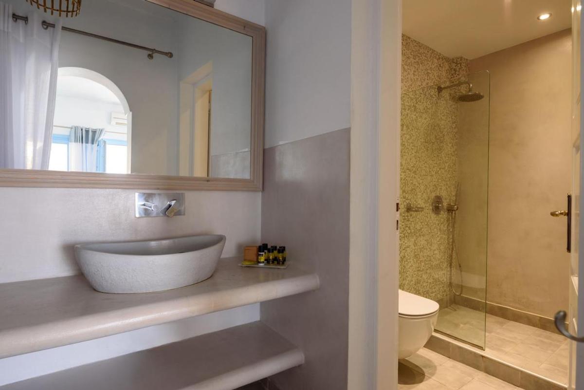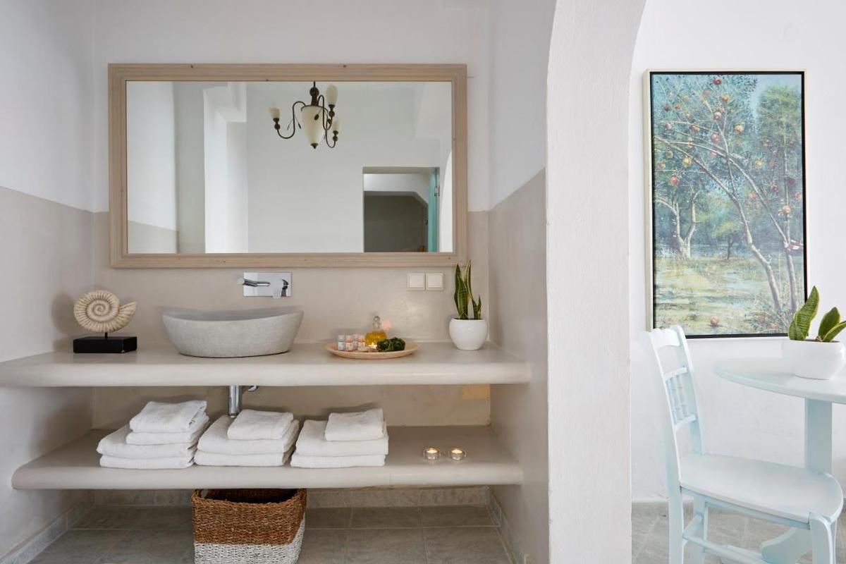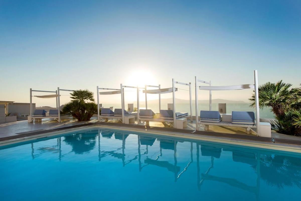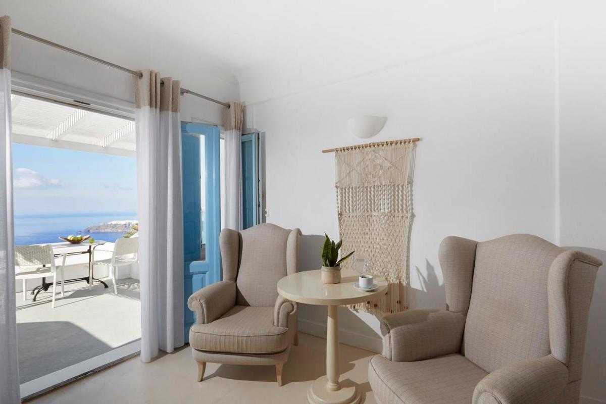 Hotelcomplex met traditionele architectuur, gebouwd in de zijkant van de klif met een adembenemend uitzicht op de Caldera. Het hotel ligt in het dorp Imerovigli. Het ligt op 8 km van de luchthaven en de haven van Athinios.