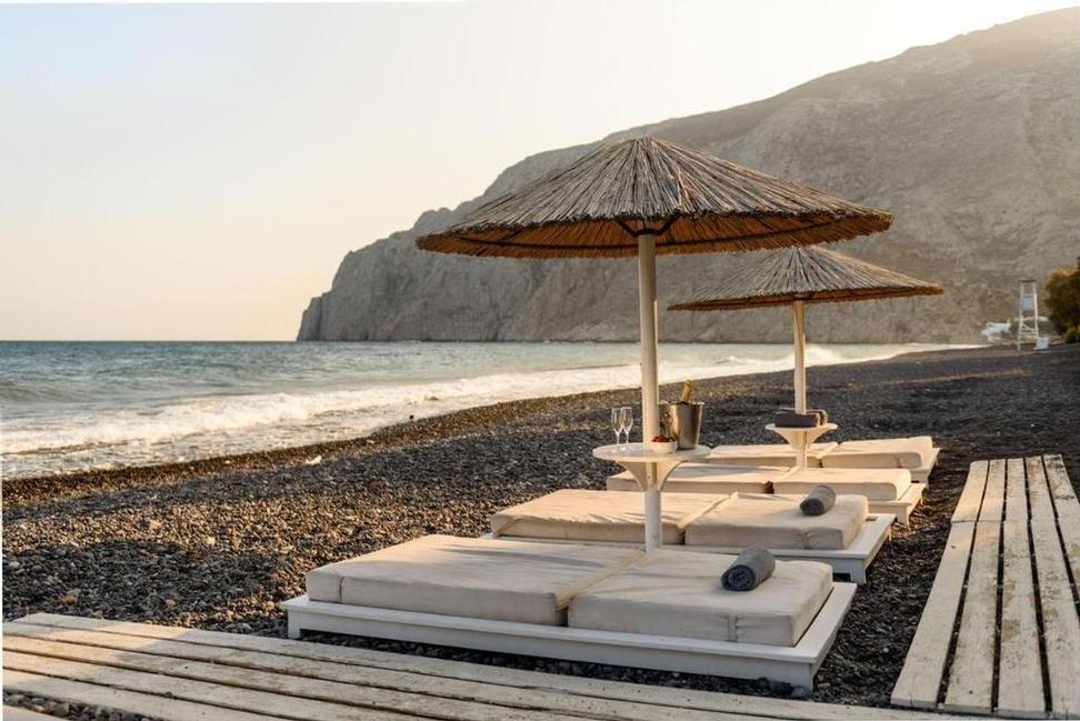Aparthotel Doplhins ligt recht tegenover het strand van Kamari, nabij het "Volkano Diving Center". Langs de weg liggen verschillende traditionele winkeltjes, tavernes en restaurants. De bushalte naar Fira ligt op 50m.