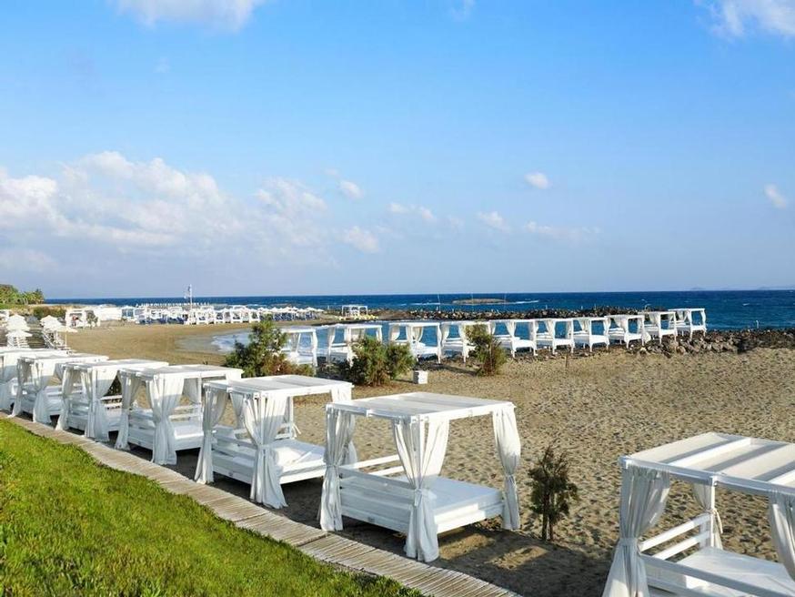 Bungalows waterkant (25-29m²): voor 1-2 volwassenen en 1 kind. Gelegen op ongeveer 20-40 m van de zee. Woonkamer/ slaapkamer met een slaapbank voor het kind. Airconditioning, ventilator, telefoon, satelliet-tv, kluis, kleine koelkast, koffie-en theefaciliteiten, Wifi. Badkamer met bad of douche, toilet, haardroger, toiletartikelen, badjassen en slippers. Balkon of terras met panoramisch zeezicht.