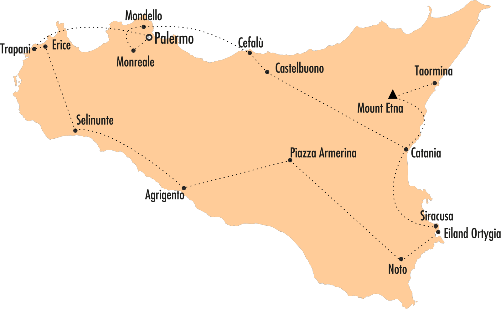 Kruispunt van beschavingen, Sicilië is een prachtige mozaïek van Griekse ruïnes, kastelen en kathedralen, oosterse tuinen, paleizen en kerken in de late barokstijl. In de loop der eeuwen ontwikkelde het eiland een zeer bijzondere culturele identiteit. Als we daar de gastronomie, de zowel exotische en typisch mediterraanse vegetatie en de vulkanische activiteit aan toevoegen, komt men tot een bestemming die iedereen kan bekoren.