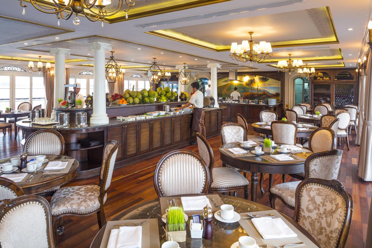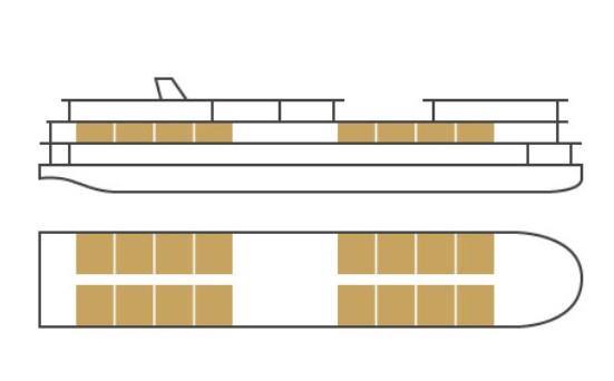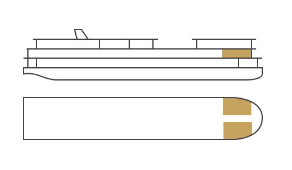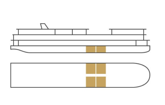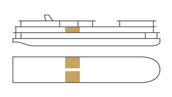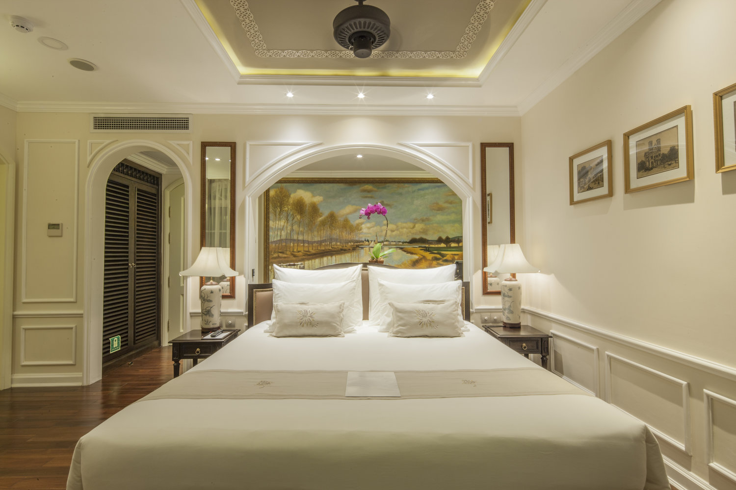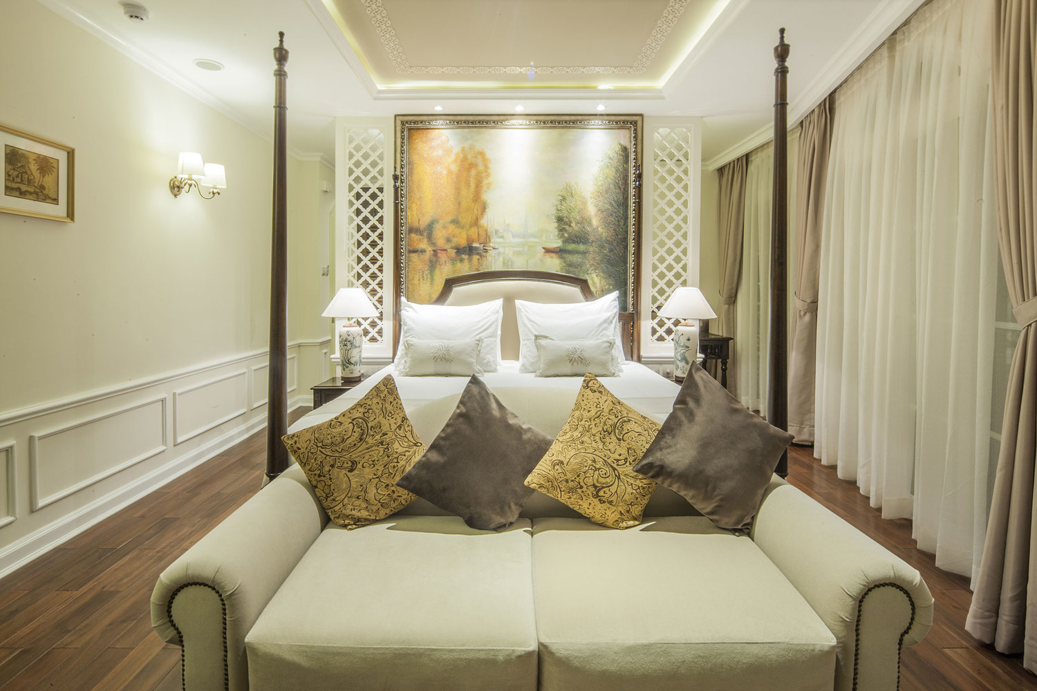 Chacune des élégantes suites climatisées du navire est une retraite magnifique et tranquille avec une touche de luxe. Cinq catégories sont proposées : quatre Suites Supérieures, 10 Suites Vista, 16 Suites Signature, deux Suites Prestige et deux Grandes Suites avec véranda privée. (34 cabines). Chacune dispose d'une salle de bains en marbre avec douche.
